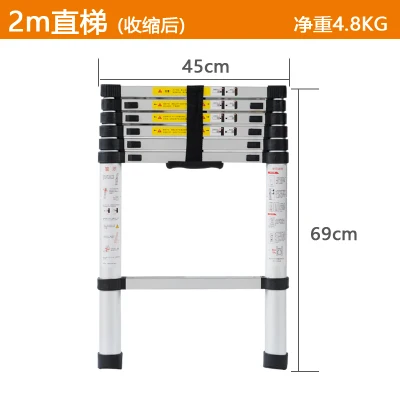 2m Fireproof Foldable Aluminum Alloy Upright Ladder Multifunctional Home/Library/Engineering Ladder